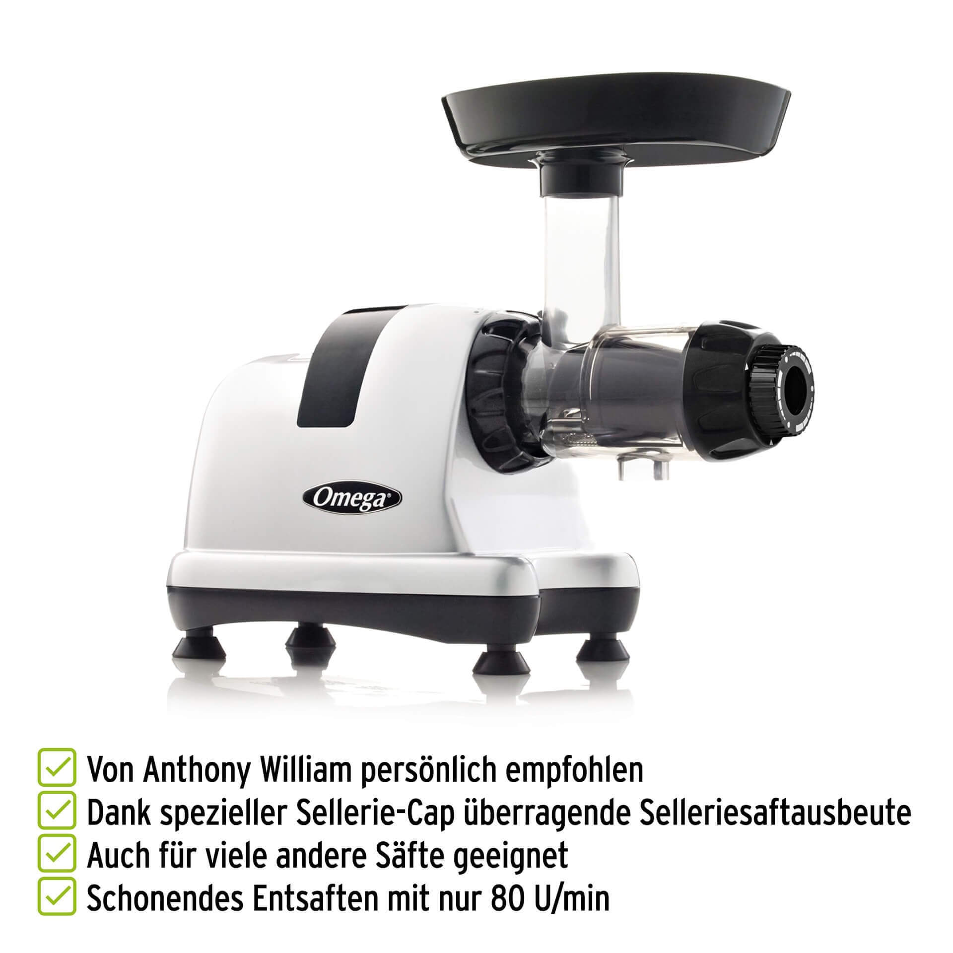 Der im Video von Anthony William vorgestellte Omega MM1500 ist im Grunde eine Version des Omega NC1002HDC, der mit einer speziellen Anthony William Selleriecap ausgestattet wurde. Genauso wie bereits der vorher empfohlene Omega MM900, welcher eine Version des Omega 8228 ist, der ebenfalls mit dieser speziellen Selleriecap ausgestattet wurde.
