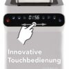 Das schicke Touch Bedienfeld zeigt 6 Automatikprogramme und darunter 10 Geschwindigkeitsstufen, welche per Fingertipp ausgewählt werden können. Im Übrigen funktioniert das auch mit nassen Fingern sehr gut. Weiterhin befinden sich auf dem Bedienfeld noch die Startaste (links) und die Pulse Taste (rechts). Mit der Pulstaste können Sie kurze Miximpulse geben. Ein LCD Display zur Anzeige von Mixzeit befindet sich in der Mitte der Bedieneinheit. Die Pulse Taste kann sehr nützlich sein, wenn sie bereits Gemixtes nochmal kurz aufmixen wollen oder wenn Sie Gemüse mit kurzen Stößen raspeln möchten.