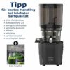 - schonendes Entsaften mit nur 63 Umdrehungen (mehr Vitalstoffe im Saft)