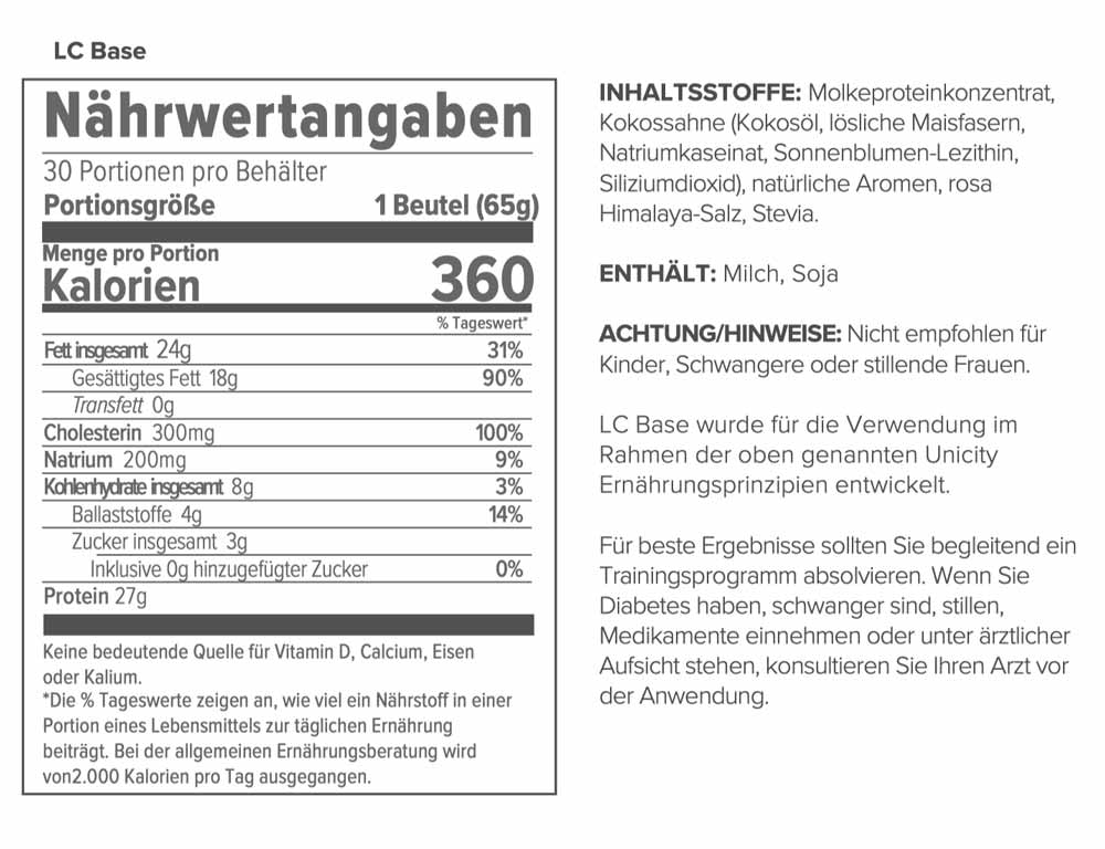 Zutaten Unicity LC Base