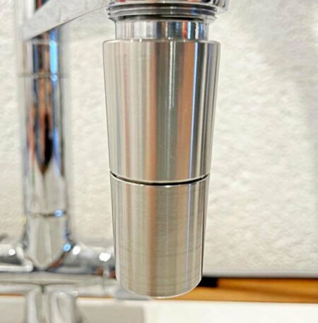 Unser hochwertiger & außergewöhnlicher „WhirlPearl One“ Wasserverwirbler eignet sich perfekt für die Vitalisierung & Belebung nach Umkehrosmoseanlagen oder Aktivkohlefiltern an denen nicht bereits eine hochwertige Premium Vitalisierung von UMH oder Aquadea verwendet wird. Nutzung bereits ab ca. 0,7 l Wasserleistung pro Minute. Dank einer speziellen Bündeldüse konnte dabei komplett auf den üblichen Kunststoffperlator verzichtet werden. M22 Gewindeanschluss | Made in Germany.